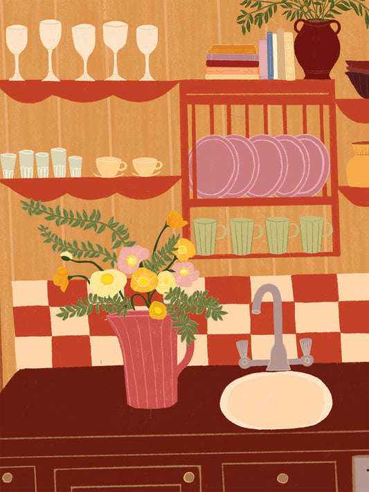 Elsa Eleni is a London-based multimedia artist whose work is rooted in storytelling and a love of the spaces we call home. A graduate of Authorial Illustration at Falmouth University, Elsa creates bright, joyful artworks that explore warmth, comfort and human connection, celebrating the quiet beauty of everyday life.